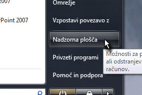 Če te ikone ne vidite, imate mogoče nastavljen klasičen pogled na nadzorno ploščo. Kliknite na Domača stran, da boste nastavili privzeti pogled. |