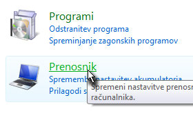 Odpre se posebno okno, ki je prirejeno za prenosne računalnike.