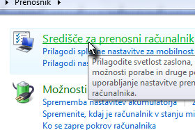 Bližnjica do programa Središče za prenosni računalnik sta tipki Winkey + X. |