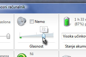 V polju za Glasnost lahko nastavljate jakost zvočnikov oziroma slušalk.