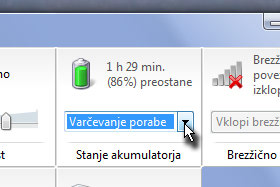 Usklajeno bo avtomatsko prenosnik nastavil tako, da bo ob napajanju delal z polno močjo, na akumulatorju pa varčeval z baterjo. To nastavitev pripročam manj veščim uporabnikom. Varčevanje porabe bo prenosni računalnik nastavil tako, da bo čimbolj varčeval z baterijo in znižal zmogljivost računalnika ter tako omogočil daljše delovanje baterije. Visoka učinkovitost pa pomeni, da bo notesnik tudi brez napajanja deloval s polno paro. |