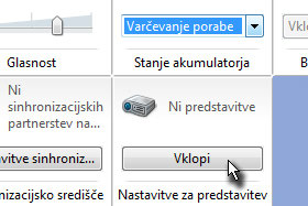 Zanimivo je tudi polje Nastavitve za predstavitev, kjer lahko naš računalnik brez problema preklopimo na projektor.