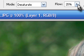 Zgoraj v orodni vrstici določite Mode na Desaturate in Flow na okoli 25%.