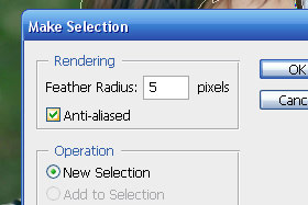 V novem oknu nastavite Feather Radius okoli 5 pixels in kliknite na gumb OK.