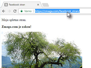 ![]() Jaz sem ustvaril testno spletno stran, da bi vam pokazal v praksi, kaj mislim povedati. Kopiral sem kodo spletnega naslova. Kopiranje naredimo tako, da označimo spletni naslov (na primer www.zmaga.com) in nato pritisnemo tipki Ctrl + C. |