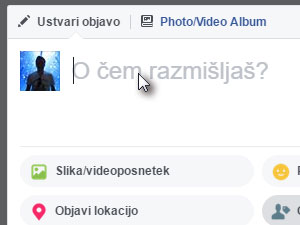 ![]() Potem pa odprem Facebook in kliknem v polje za vpisovanje svojih misli itd ... |