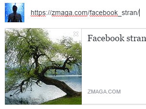 ![]() Prilepim prej kopiran naslov in Facebook bo avtomatsko povzel podatke iz spletne strani, za katere misli, da so relavantne. Prilepite naslov tako, da pritisnite tipki Ctrl + V. Vendar pa bi jaz raje prikazal sliko in podatke, za katere menim, da so bolj primerni. |