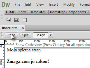 ![]() Zato bom odprl svojo spletno stran in se premaknil v kodni način (HTML). Za več informacij v primeru urejanja spletnih strani smo na voljo na forumu. |