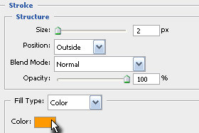 V novem oknu določite Size 2 px in Color preko kvadratka določite isto barvo kot na začetku. Kliknite na gumb OK. |