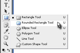 Držite z miško na orodju Rounded Rectangle Tool (bližnjica je tipka U) toliko časa, dokler se ne prikažejo ostala orodja. |