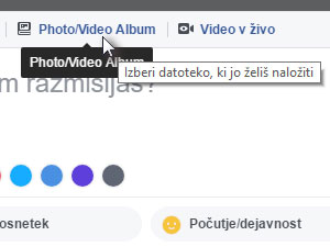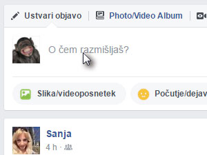 Prijavite se v Facebook in kliknite v polje O čem razmišljaš?