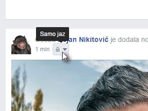 ![]() Slika se bo prikazala na vaši časovnici in če se boste z miško premaknili nad ikono z ključavnico, boste opazili, da je objava vidna le vam. |