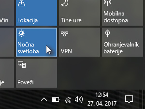 ![]() Način nočne svetlobe vkloplite lahko tudi tako, da kliknete na ikono za obvestila (glej sliko) ... |