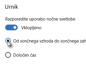 ![]() V nastavitvah lahko nastavite urnik tako, da deluje od sončnega vzhoda in zahoda ali pa določen čas. |