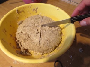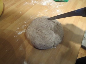 Ko boste dobili lepo obliko testa, naredite z nožem na vrhu križ, da se bo hitreje vzhajalo. |