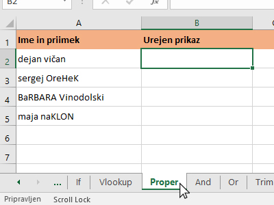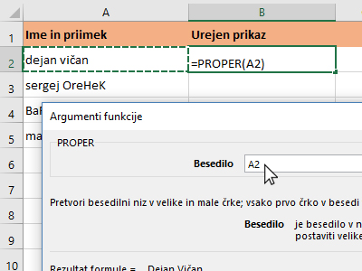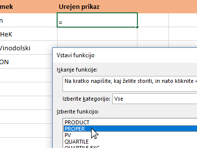 ![]() V novem oknu izberite kategorijo Vse. Potem pa v polju izbiranja funkcij poiščite, označite PROPER in kliknite V redu. |