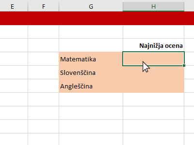 ![]() Potem pa kliknite v prazno celico, kjer boste prikazali najnižjo oceno v matematiki. |