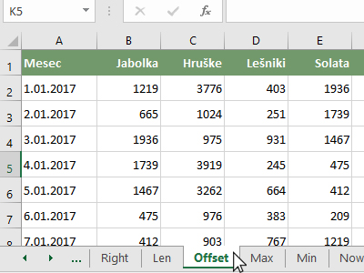 Excel funkcija OFFSET |
