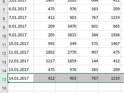 ![]() Dodajte sedaj novo vrstico, kjer bo prikazan promet za nov dan z poljubnimi zneski. |