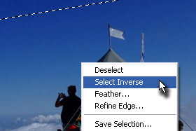 Kliknite sedaj na označeni del z desnim miškinim gumbom in izberite Select Inverse.
