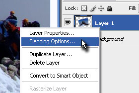 Kliknite na dupliciran layer z desnim miškinim gumbom in izberite Blending Options... |