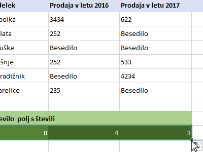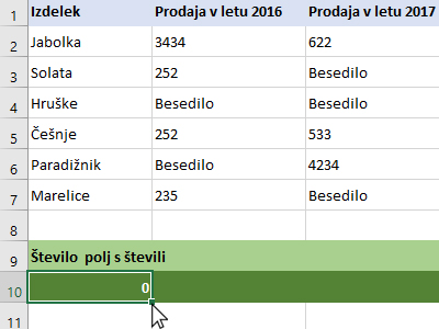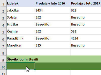 ![]() Kliknite v celico, kjer boste izračunali število celic. |