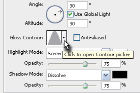 Shadow Mode določite Dissolve in Gloss Contour določite vijugo, kot sem jo jaz.