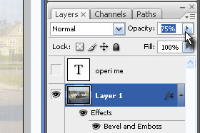 Nastavite dupliciranemu layerju Opacity na 75%.