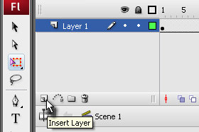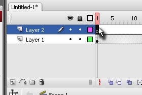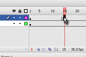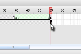 Sedaj značite frame 55 v prvem layerju in pritisnite tipko F5 (glej sliko).