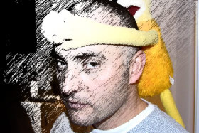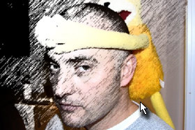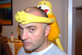 Jaz sem odprl fotografijo z Jagotom, ki mi pozira na prednovoletni zabavi.