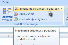 ![]() Kliknite na gumb Preverjanje veljavnosti podatkov. |