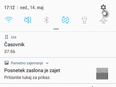 Povlecite s prstom iz zgornjega roba zaslona nazvdol, da prikažete več možnosti in tapnite na Nastavitve.