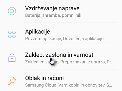 ![]() V nastavitvah tapnite na Zaklep. zaslona in varnost. |
