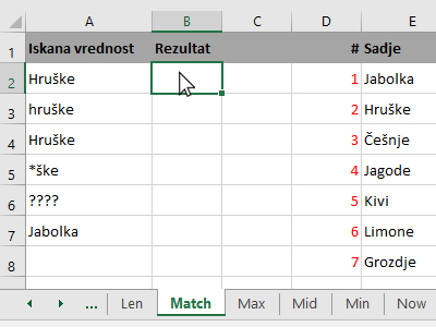 Lahko pa si tudi prenesete XLSX datoteko, kjer se namišljeni podatki že nahajajo (odprite zavihek Match).