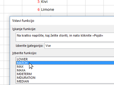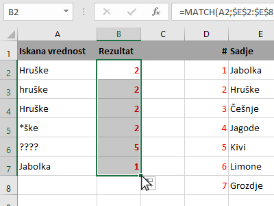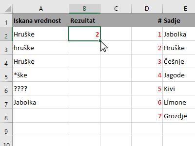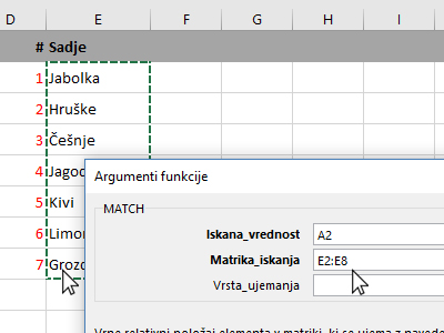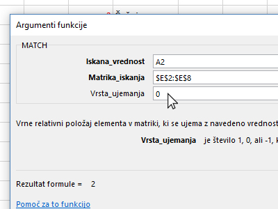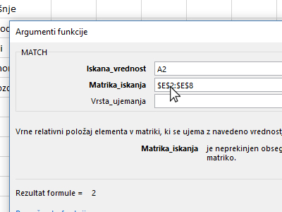 Kliknite nato v celico, kjer boste izračunali iskano vrednost (glej sliko).