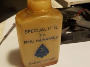 ![]() Tukaj se seveda postavlja vprašanje, kakšno olje je primerno. Naj kar takoj povem, da običajno kuhinjsko olje ni primerno. Prav tako tudi WD-40 za kaj takega ni primeren. V praksi se lahko uporabi katerokoli lahko strojno olje. Sam bi priporočal olje za šivalni stroj ali pa kar splošno strojno olje. |