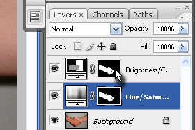 ![]() Sedaj pa držite tipko ALT in držite z miško na maski prvega nastavitvenega layerja (glej sliko)... |
