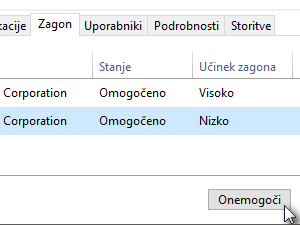 ![]() Če za nek program smatramo, da ni potrebno, da se avtomatsko zažene ob startu Windows, lahko to s klikom na gum Onemogoči spremenimo. |