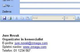 Odpre se vam novo okno za ustvarjanje sporočila in v besedilu bi se moral videti vaš novi e-podpis.