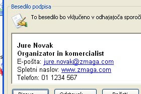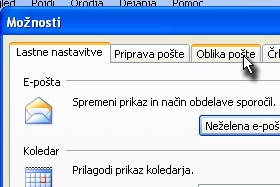 V oknu Možnosti mora biti v polju novih sporočil označen ravnokar ustvarjen podpis.