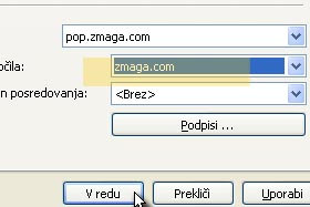 V mojem primeru zmaga.com. Kliknite na gumb V redu. |