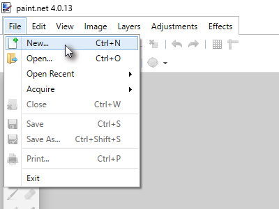 ![]() Potem pa v Paint.net kliknite na File ter izberite New... |