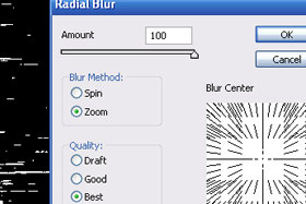 V novem oknu določite Amount 100, Blur Method Zoom in Quality Best. Potrdite na gumb OK. |