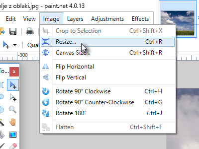 ![]() Potem pa kliknite na Image in izberite Resize... |