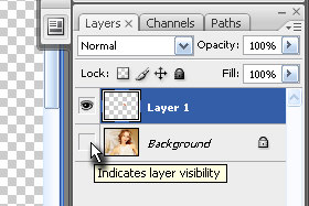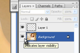 S tem ste vidnost layerja odstranili. Dupliciran layer mora ostati označen. |