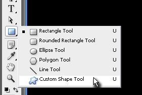 Držite z miško na orodju Rectangle Tool (bližnjica je tipka U) toliko časa, dokler se ne prikažejo ostala orodja.