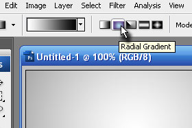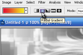 Zgoraj v orodni vrstici določite Radial Gradient (glej sliko). |
