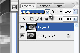 Kliknite zgoraj na Edit, Transform in izberite Rotate 180 stopinj. Potem pa dupliciranemu layerju določite senčenje na Screen. |