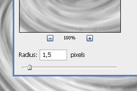 Kliknite zgoraj na Filter, Blur in izberite Gaussian Blur... V novem oknu določite Radius 1,5 pixels in potrdite na gumb OK. |