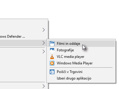 ![]() Kliknite na datoteko z desnim miškinim gumbom in izberite Za odpiranje uporabi ter Filmi in odddaje. |